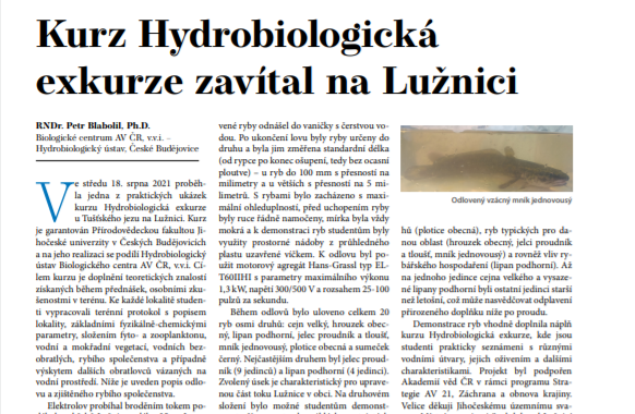 Suchdolský zpravodaj – Zpravodaj města Suchdol nad Lužnicí – Říjen 2021 20. 10. 2021 Využití moderních metod při studiu změn populací v krajině Výstup za řešitele RNDr. Petra Blabolila, Ph.D. Kurz Hydrobiologická exkurze zavítal na Lužnici – str. 17